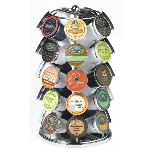 The Carousel for K-Cups elegantly displays all your favorite K-Cups. The lazy susan base rotates 360-degree, making it extremely easy to find and select your favorite K-Cup flavor. The stylish chrome finish design looks great on any kitchen counter top. The Carousel for K-Cups will hold up to 35 K-Cups.